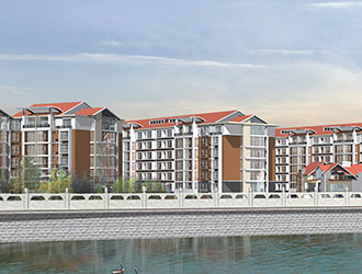 項目總占地面積100畝,總建筑面積20萬平方米,是集住宅、商業(yè)為一體的大型北歐風格度假社區(qū)。